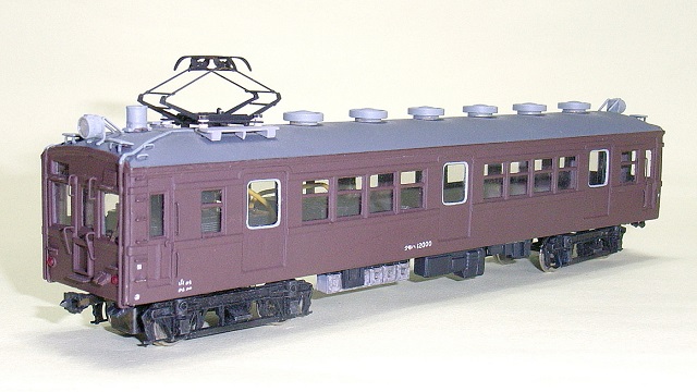 八千代市:T様 懐かしいロコ・モデル製キットを組まれたものです。 (その後、当方で補修を請け負いました。) この生粋クモハ12は、大糸線で活躍した2個パンタの12001が有名ですが、他にプロトタイプを求めようにも、ドンピシャの個体ってありそうでないのですよね。(晩年) このモデルは、そう言った意味で半フリーということで12000というナンバーをもらっています。 伊豆箱根鉄道に渡っていなければ……という、とてもナイスな遊び方です。